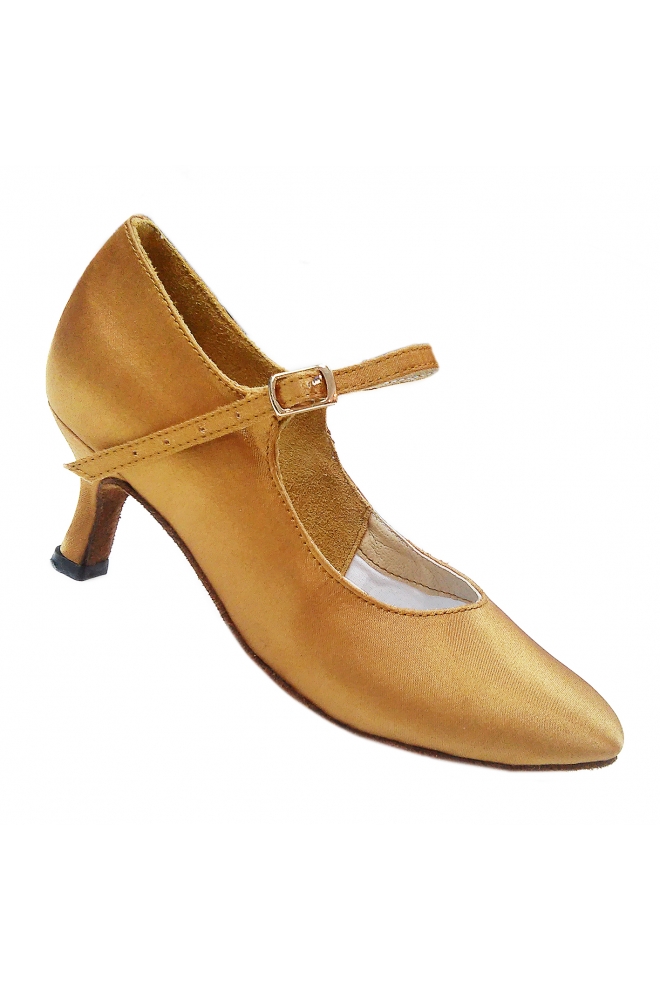Жіночі танцювальні туфлі для стандарту (бежевий сатин)